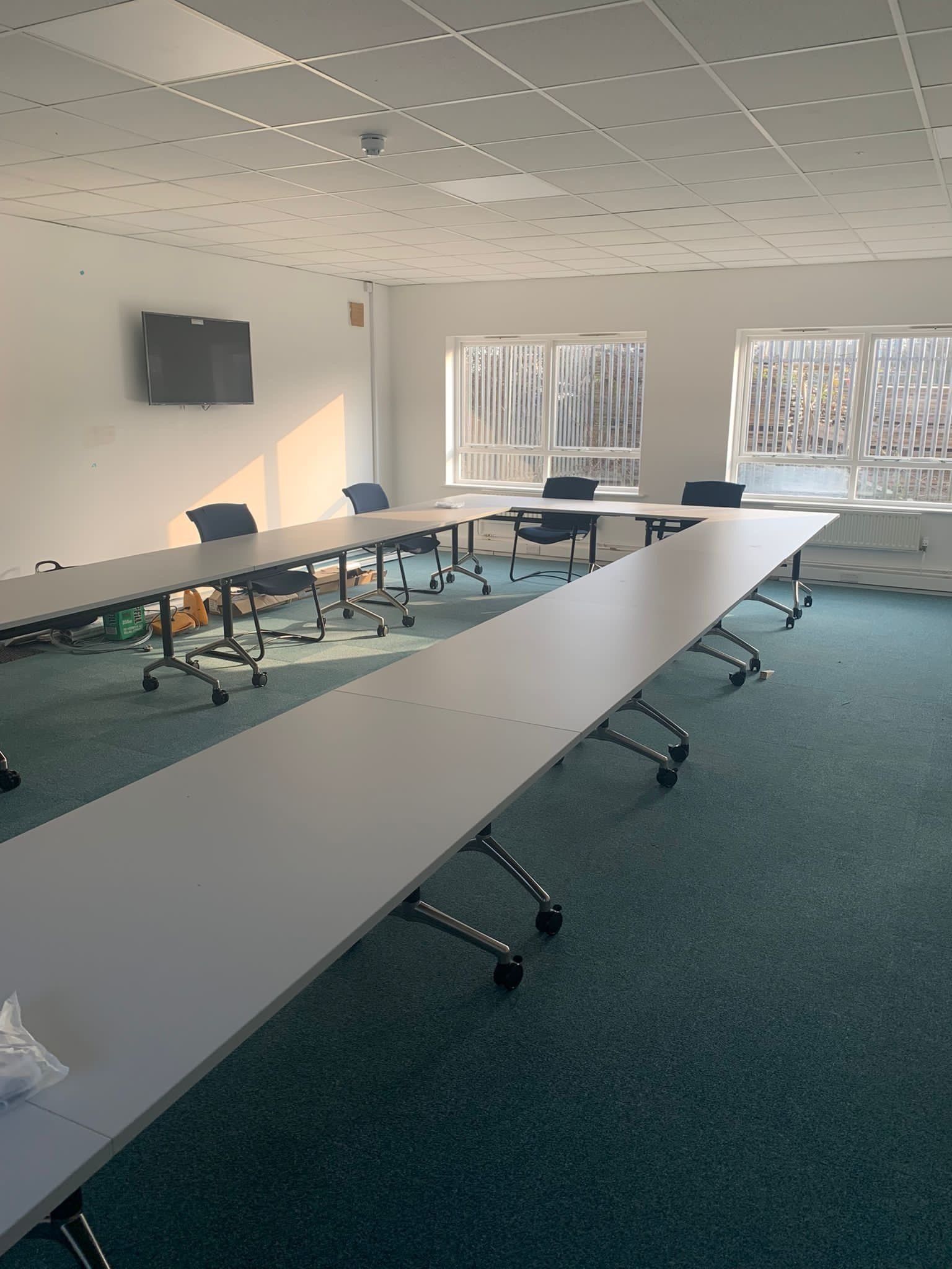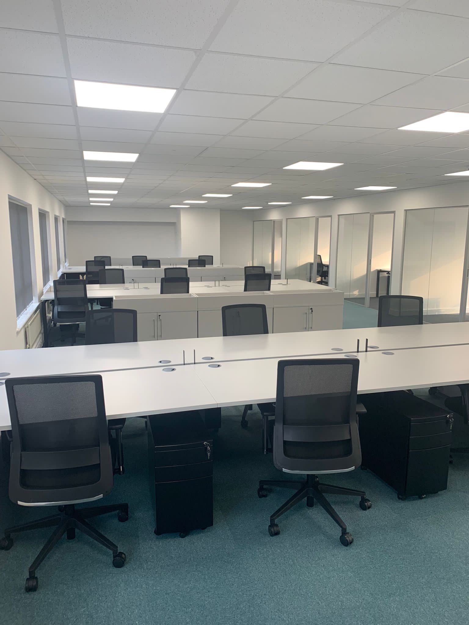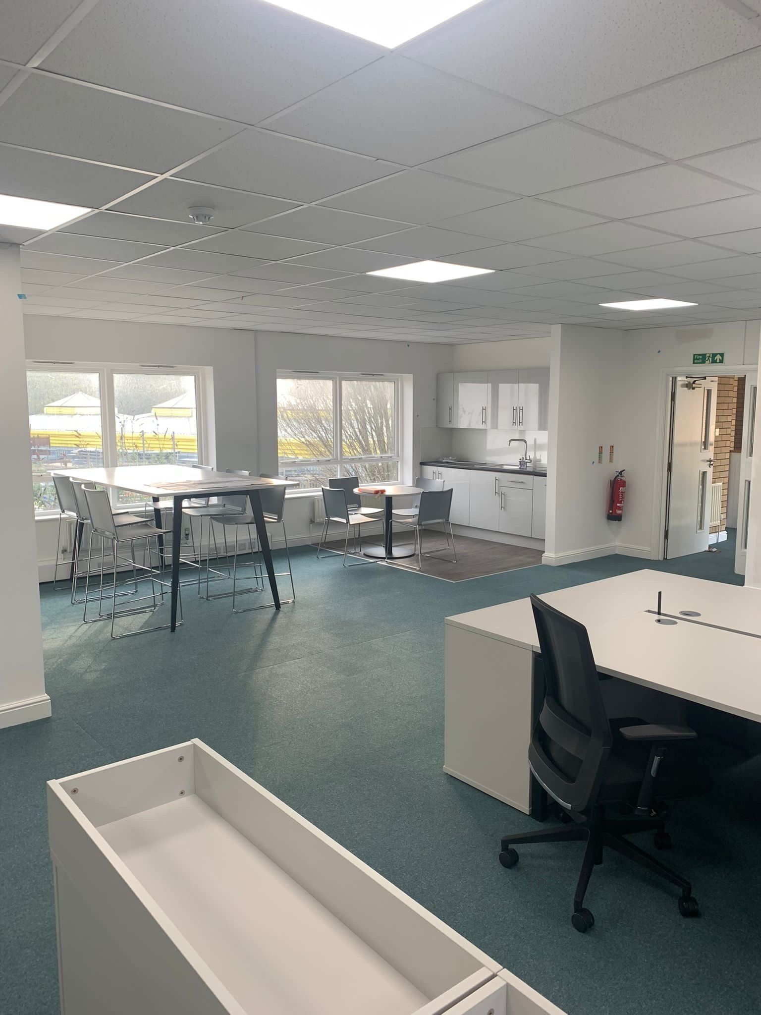 This project involved the interior refurbishment of a commercial property located in Peterborough, Cambridgeshire. It was undertaken for a local commercial refurbishment company and included revitalising both the interior and exterior of the building. The work comprised spraying the previously powder coated aluminium porch from Cream to Anthracite Grey (RAL7016) and painting the interior walls, windows, and woodwork in Brilliant White to give the offices a fresh and polished look.